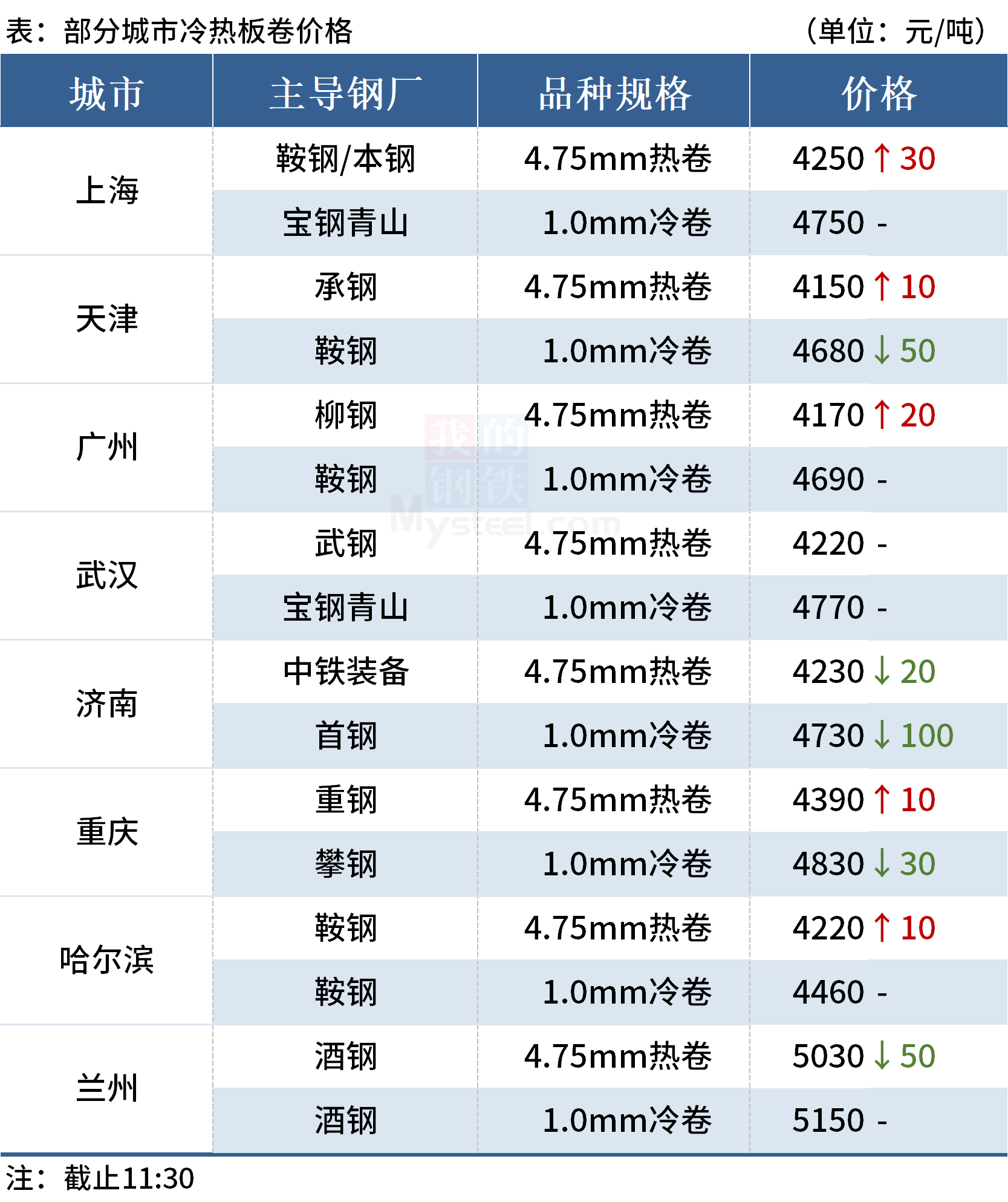 ◎濟(jì)南:5日早盤熱卷市場價(jià)格跌20,現(xiàn)4.75mm普卷主流4230,低合金市場報(bào)價(jià)4360,部分規(guī)格貨少。(單位:元/噸)