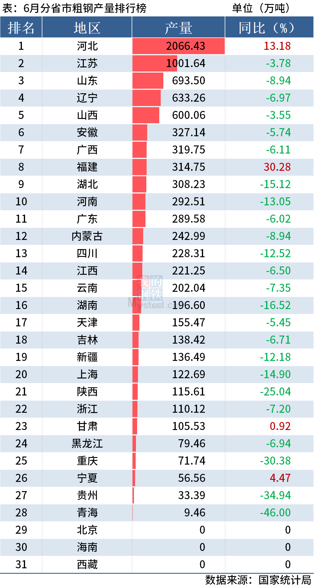 日前,國家統(tǒng)計局數(shù)據(jù)顯示,2022年6月全國粗鋼產(chǎn)量9073萬噸,同比下降3.3%;1-6月全國粗鋼產(chǎn)量52688萬噸,同比下降6.5%。
