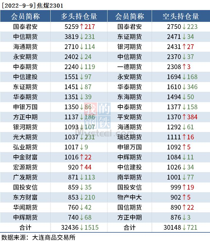 各品種持倉情況具體如下: