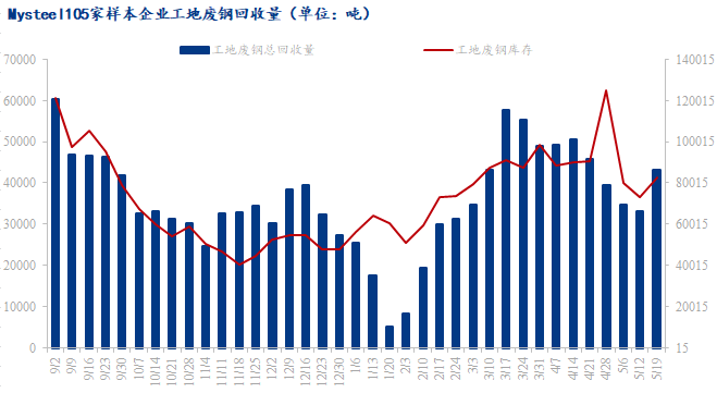 5月份以來,螺紋鋼價格走勢繼續(xù)震蕩下行,這再度驗證了旺季時節(jié)不旺的預期,相比較廢鋼市場,廢鋼價格明顯跌幅偏小,上周廢鋼價格窄幅震蕩,給予了部分商家以操作空間,工地廢鋼回收量在上兩期的二連降之后有所回升。