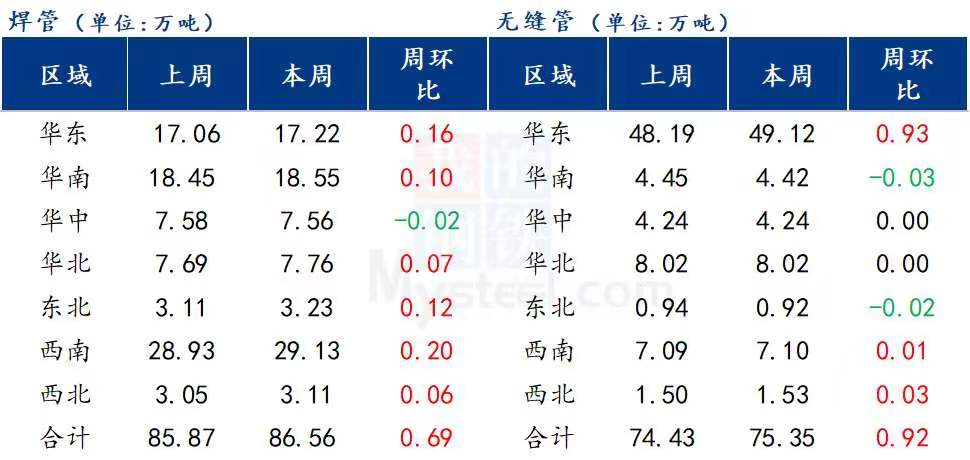 全國主要城市焊管樣本庫存86.56萬噸,周環(huán)比增0.69萬噸,月環(huán)比降0.56萬噸,年同比增4.1萬噸。