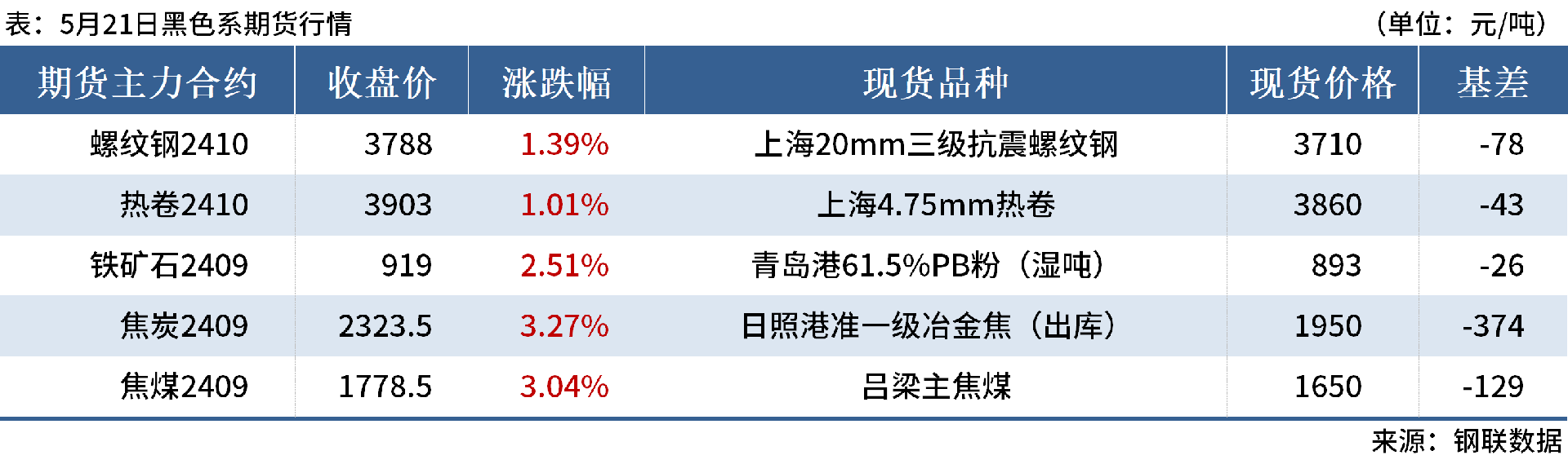 ◎5月21日,焦炭第一輪提降落地,河北、山東市場主流鋼廠對焦炭采購價濕熄下調100元/噸,干熄下調110元/噸。
