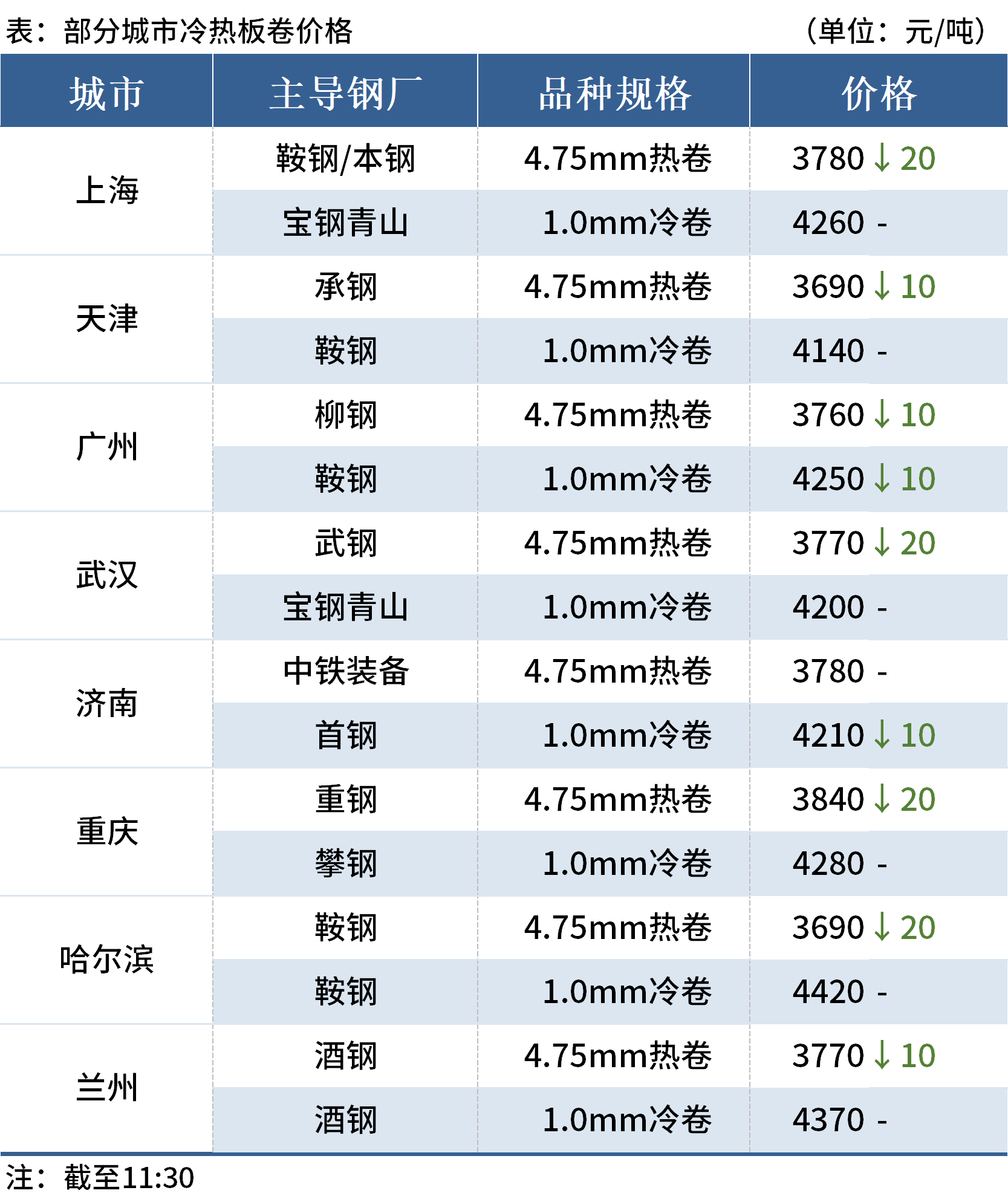 ◎天津:17日早盤冷軋市場(chǎng)價(jià)格持穩(wěn),新天鋼薄板4140首鋼4140包鋼4090河鋼唐鋼4120。(單位:元/噸)