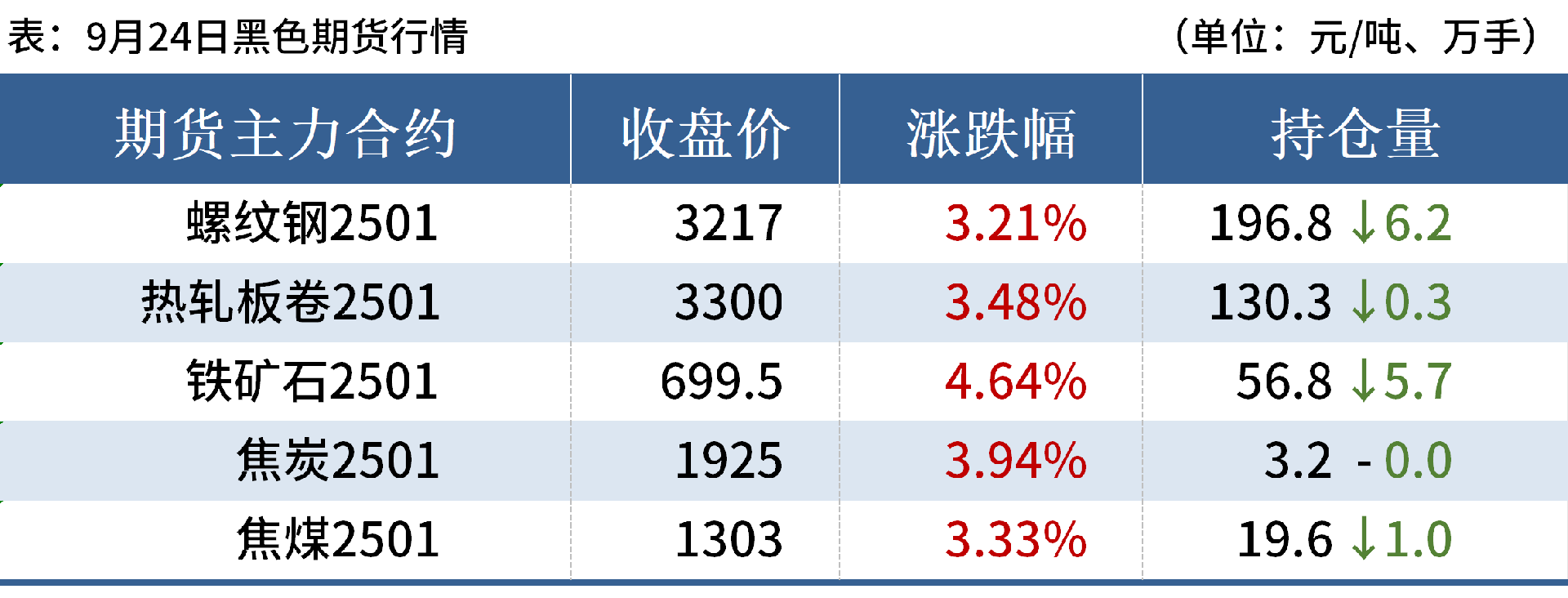 螺紋鋼:9月24日,全國主要城市螺紋鋼均價3402元/噸,較上個交易日上漲41元/噸。具體來看,期螺震蕩上漲,國內(nèi)現(xiàn)貨價格止跌企穩(wěn),部分城市小幅探漲,市場成交放量。盤中短期來看,新老標(biāo)資源切換導(dǎo)致市場不同程度出現(xiàn)規(guī)格缺貨現(xiàn)象,根據(jù)商家反饋的到貨情況來看,此現(xiàn)象節(jié)后可以有所緩解,節(jié)前在國慶備貨的預(yù)期支撐下,預(yù)計建筑鋼材價格或?qū)⒀永m(xù)反彈走勢。