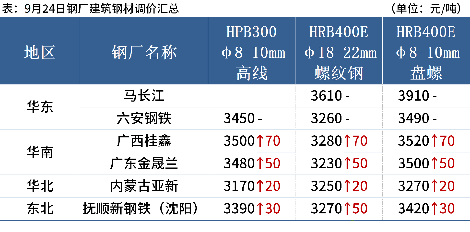 9月24日,4家鋼廠上調(diào)建筑鋼材出廠價20-70元/噸。
